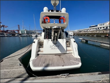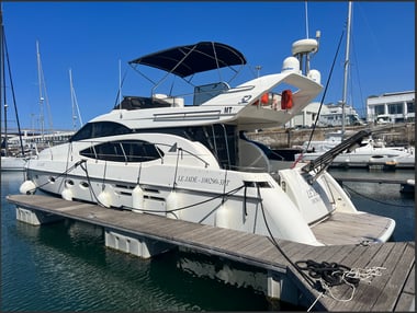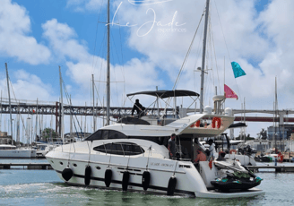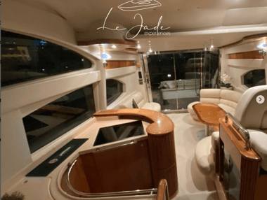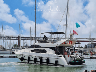 Inspired by love, Le Jade will be the perfect choice to make your day incredible. Between friends, family, couples... this 16,80 meters azimut 52 can host until 13 people and thanks to its two 500cv engines, it can also drive you from the Trade place to the Belem Tower in less than 15mins.
